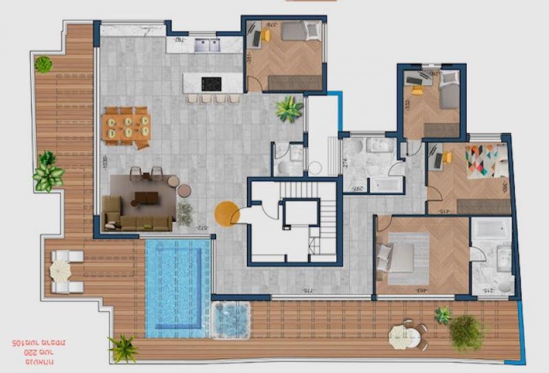 It is possible to combine the two penthouses to create a 220 sqm apartment + 105 sqm terrace with a private pool and 2 parking spaces, for 22 million NIS!!