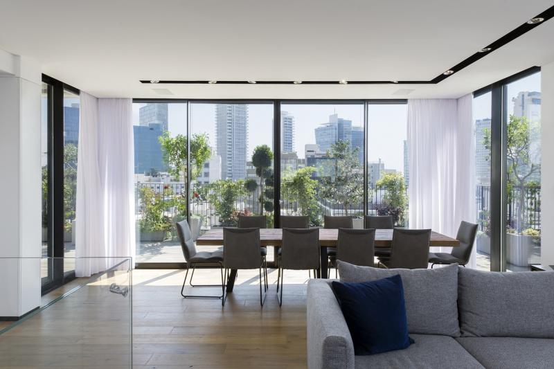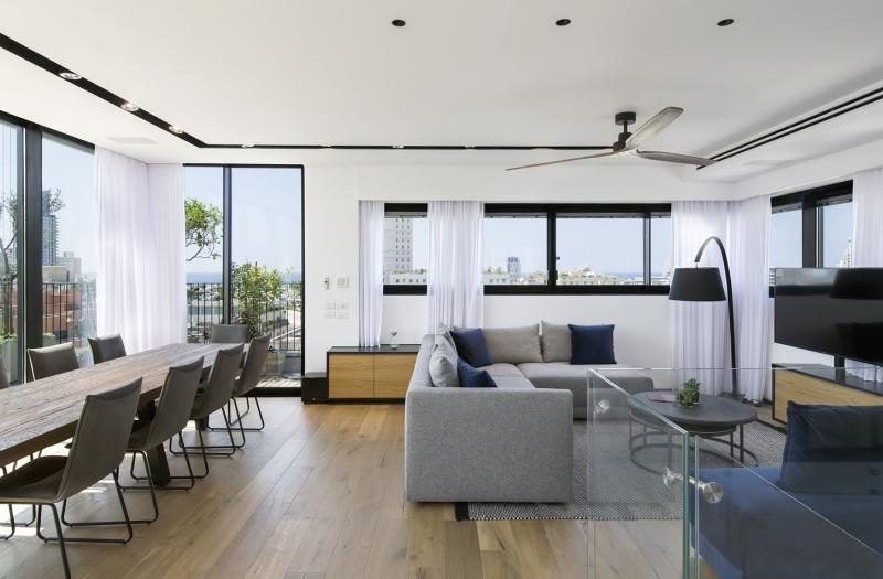 200 sqm built (5-room) + 120 sqm balconies - open view over the rooftops of Tel Aviv and the sea.
