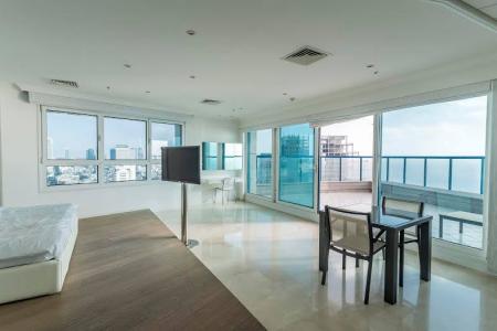 High-level design with amazing sea view Another room for office, 4 Bathrooms, 4 balconies two of 25 meter and two of 8 meter,located on all high floor in Isrotel Tower Hayarkon Street Tel Aviv,with swimming pool,gym, security 24,tow parking,3 min from the beach.